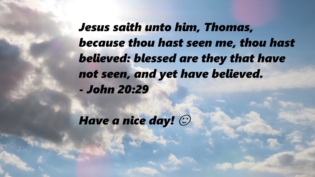 Jesus saith unto him, Thomas, because thou hast seen me, thou hast believed: blessed are they that have not seen, and yet have believed.