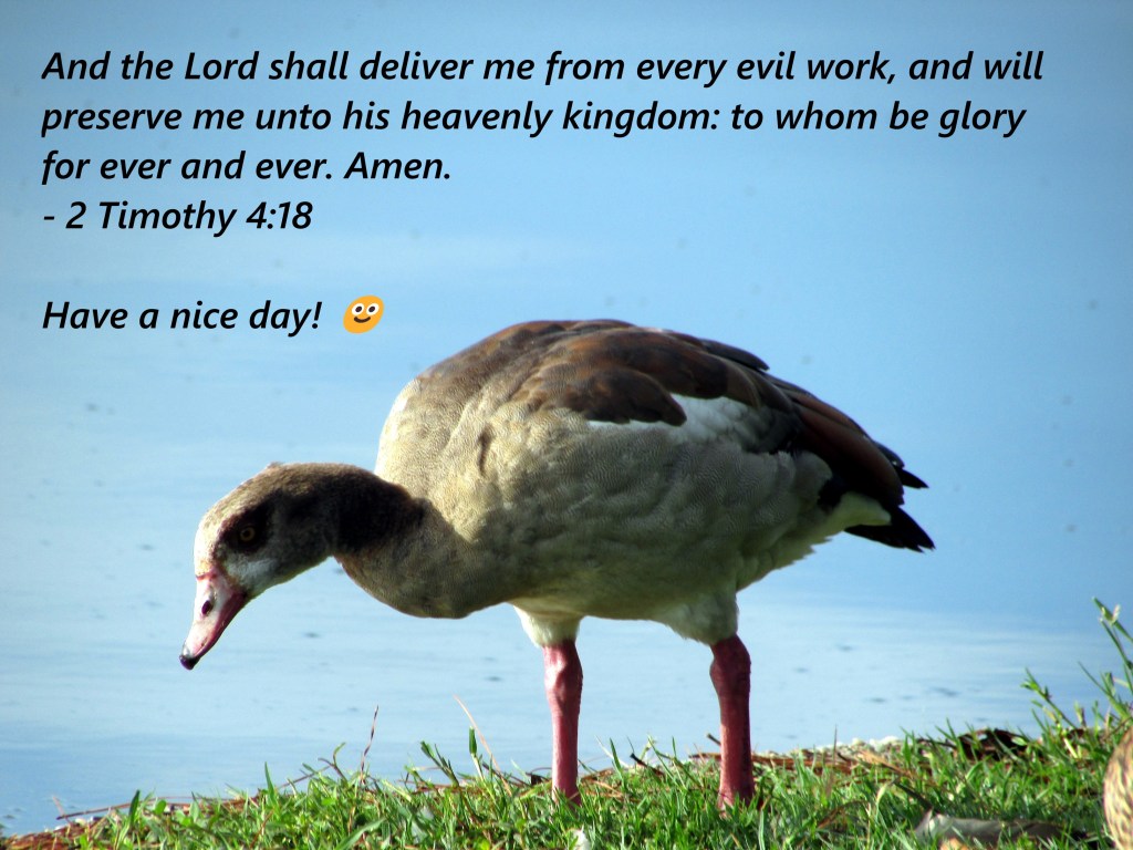 And the Lord shall deliver me from every evil work, and will preserve me unto his heavenly kingdom: to whom be glory for ever and ever. Amen.π