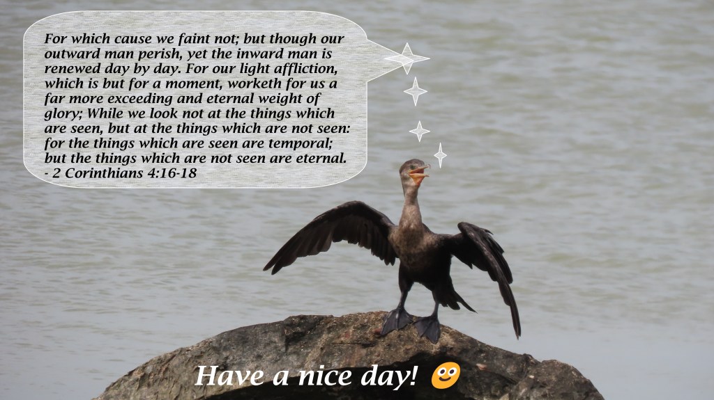 For which cause we faint not; but though our outward man perish, yet the inward man is renewed day by day. For our light affliction, which is but for a moment, worketh for us a far more exceeding and eternal weight of glory; While we look not at the things which are seen, but at the things which are not seen: for the things which are seen are temporal; but the things which are not seen are eternal.
