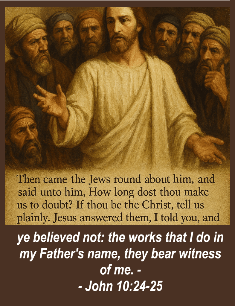 Then came the Jews round about him, and said unto him, How long dost thou make us to doubt? If thou be the Christ, tell us plainly. Jesus answered them, I told you, and ye believed not: the works that I do in my Father’s name, they bear witness of me. –