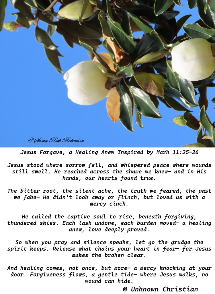 , a reciprocation (gives as good as one gets) of grace for others. Our release is tied to the grace we extend. In this broken world of assumptions, forgiving others invites forgiveness in return. Isn’t it comforting when wrongful judgment circles back, and justice and glory shine in your righteousness through forgiveness? Jesus forgave. This scripture resonates with themes of restoration and legacy, like prayers shaped around Simeon and Levi, where brokenness becomes a gateway to transformation.