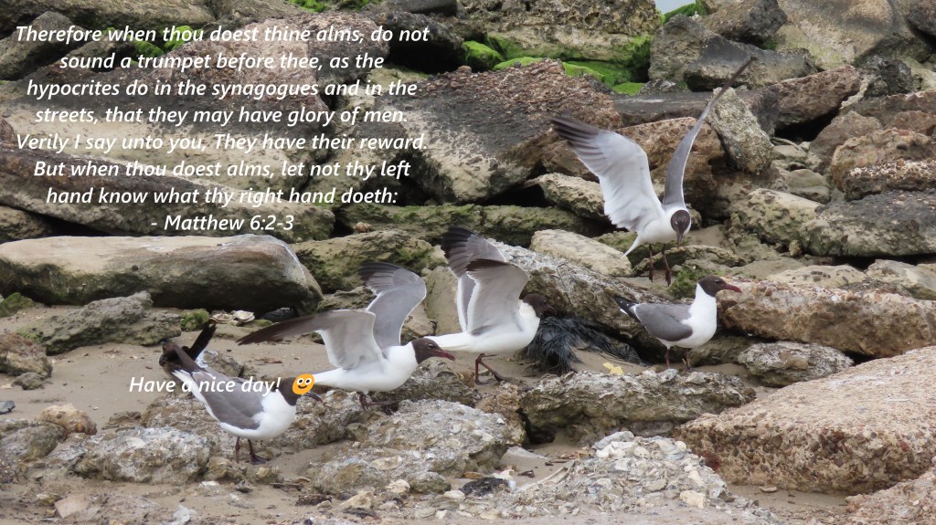 Therefore when thou doest thine alms, do not sound a trumpet before thee, as the hypocrites do in the synagogues and in the streets, that they may have glory of men. Verily I say unto you, They have their reward. But when thou doest alms, let not thy left hand know what thy right hand doeth: