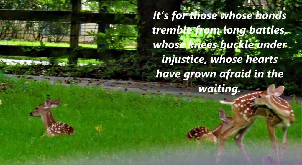 Strengthen the hands that tremble. Steady the knees that falter. Speak to the fearful heart: Be strong. Fear not. Your God is not absent. He is coming, with justice, with recompense, with salvation.