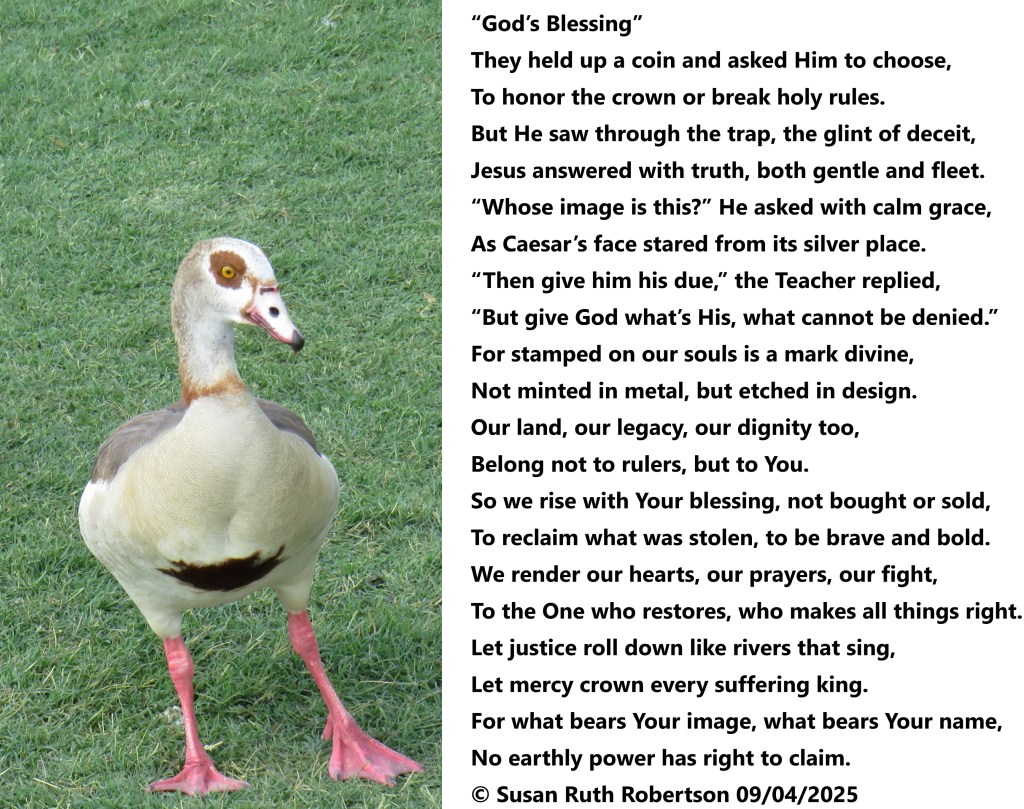 This is one of the most profound moments of spiritual and political discernment in the Gospels. Jesus is being tested, cornered by those who hope to trap Him into either defying Roman authority or alienating the Jewish people. But His response transcends the trap entirely. Jesus doesn’t deny the legitimacy of civic responsibility. He acknowledges Caesar’s image on the coin, implying that taxes belong to the realm of earthly governance. But He pivots, brilliantly, to a deeper truth: while Caesar may claim coins, God claims hearts. What bears God’s image (Genesis 1:27: So, God created mankind in his own image, in the image of God he created them; male and female he created them.)? Humanity itself. So, we are to render our very selves to God. Knowing what belongs to God, land, legacy, dignity, and refusing to let earthly powers claim what is sacred.