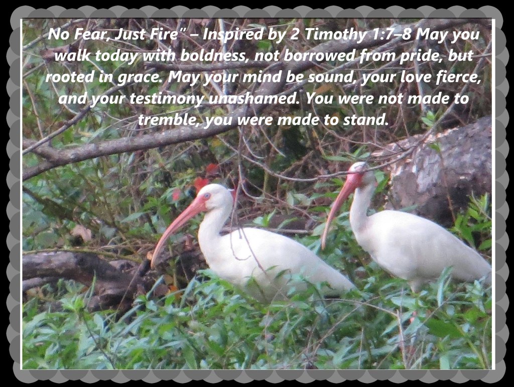 No Fear, Just Fireβ β Inspired by 2 Timothy 1:7β8: May you walk today with boldness, not borrowed from pride, but rooted in grace. May your mind be sound, your love fierce, and your testimony unashamed. You were not made to tremble, you were made to stand.