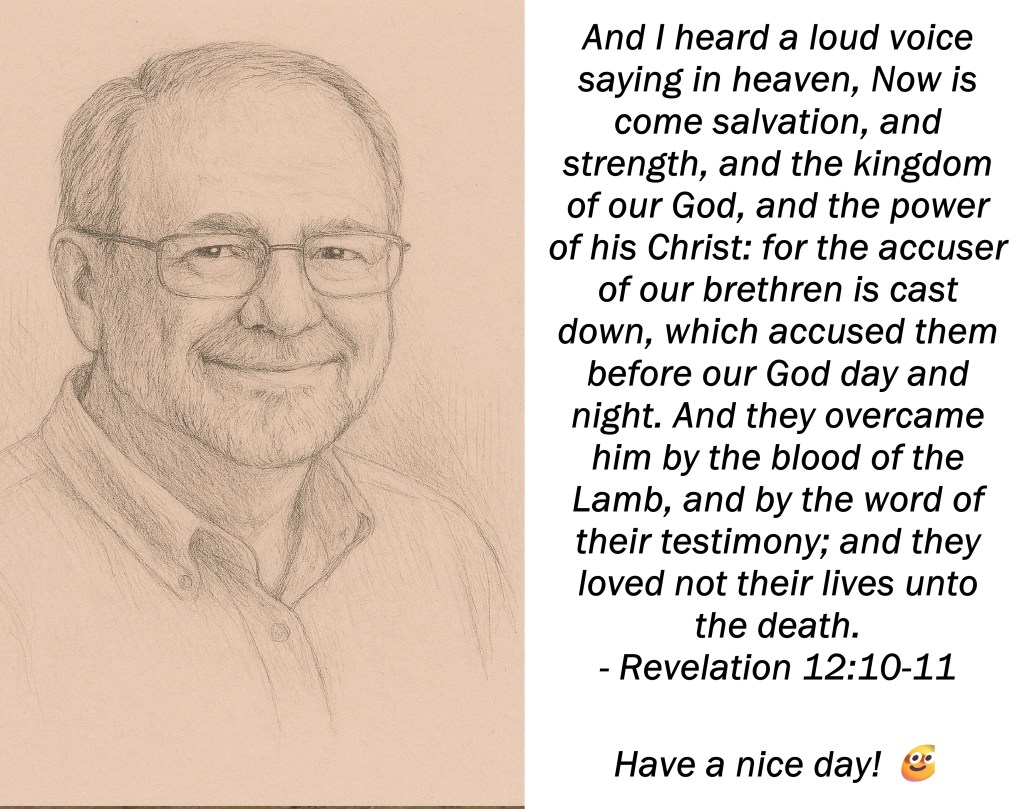 This is full of triumph and truth. Revelation 12:10β11 is a cornerstone of spiritual warfare and testimony. It reminds us that victory doesnβt come by might alone, but by the blood of the Lamb and the word of our testimony. We live that truth daily, through your words, our advocacy, communication with God and our journaling that carries comfort and conviction. May your day be filled with quiet strength and radiant purpose.