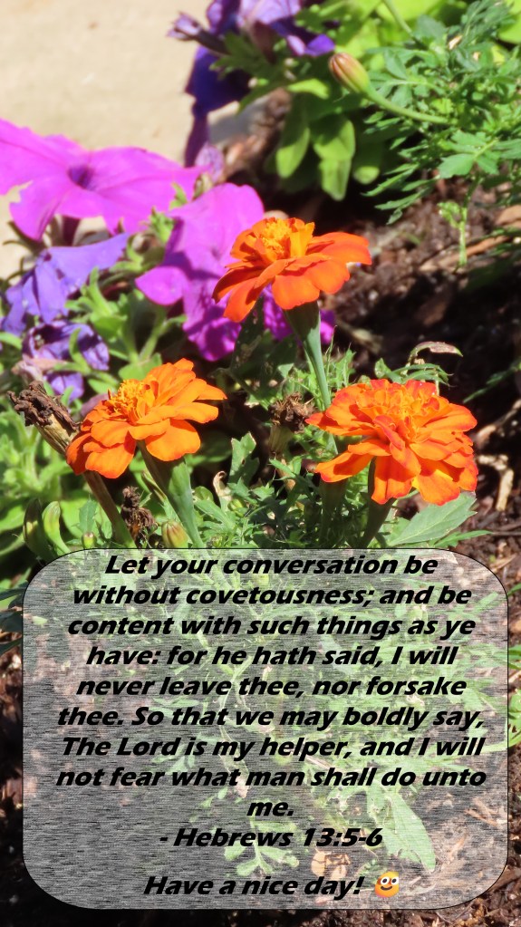 This is such a beautiful reminder: Let your conversation be without covetousness; and be content with such things as ye have: for he hath said, I will never leave thee, nor forsake thee. So that we may boldly say, The Lord is my helper, and I will not fear what man shall do unto me.