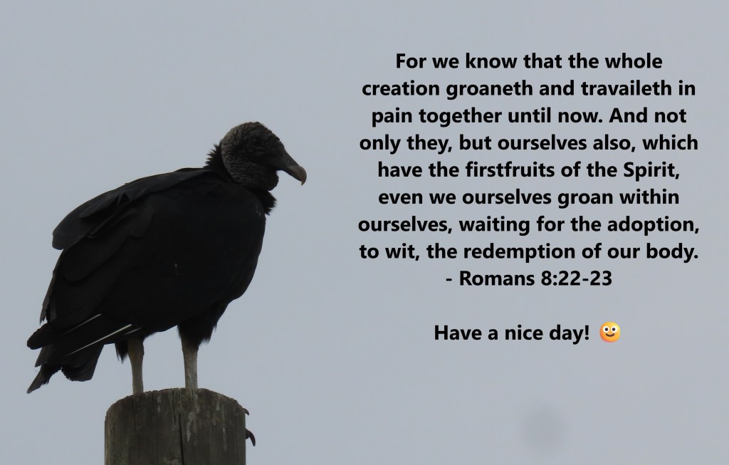 For we know that the whole creation groaneth and travaileth in pain together until now. And not only they, but ourselves also, which have the firstfruits of the Spirit, even we ourselves groan within ourselves, waiting for the adoption, to wit, the redemption of our body.
