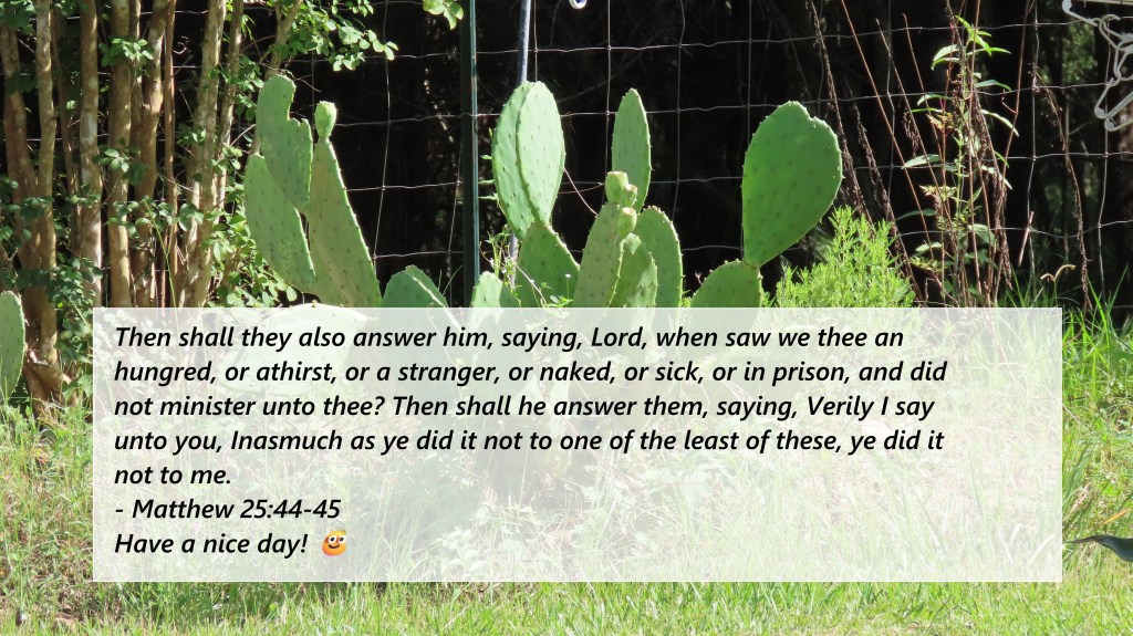 Then shall they also answer him, saying, Lord, when saw we thee an hungred, or athirst, or a stranger, or naked, or sick, or in prison, and did not minister unto thee? Then shall he answer them, saying, Verily I say unto you, Inasmuch as ye did it not to one of the least of these, ye did it not to me.