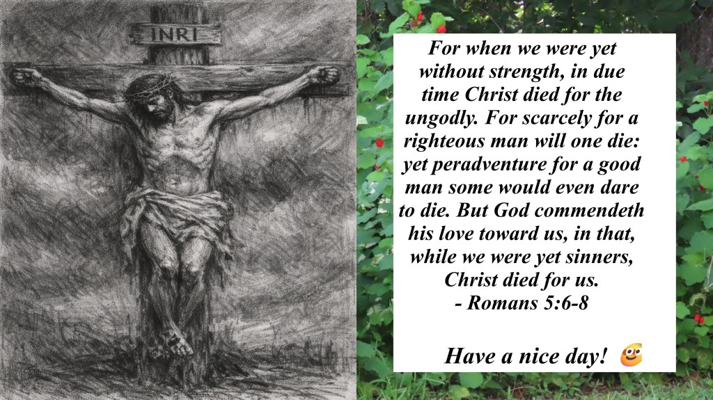 Jesus promised He would not leave us comfortless, and the Holy Spirit truly becomes most real when everything else is stripped away. When you feel all is gone, –> when words failed, –>the Spirit remained, –> listening, –> interceding, –> carrying what you could not say. That kind of closeness isn’t learned in comfort; –> it’s discovered in surrender. There is no shame in realizing that illness or tough times brings you nearer. Many of the deepest friendships with God are born in places of weakness. The Spirit doesn’t withdraw when we falter, –>He draws nearer, –>becoming breath when ours is thin, –>voice when ours is silent, –>strength when ours is gone. This quietly teaches what Jesus meant when He said the Helper would come. –>Not as an idea, –>not as a distant presence, –>but as the One who stays when everyone else cannot. That awareness gained is a gift–>hard-won, but precious, and it continues to shape how you journey with Him now. These Verses hold such quiet power. It reminds us that Christ’s love did not wait for strength, goodness, or worthiness–> it met us in our weakness and reached us while we were still far off. –>Love that moves first, –> love that gives without conditions, –>love that rescues rather than rewards.