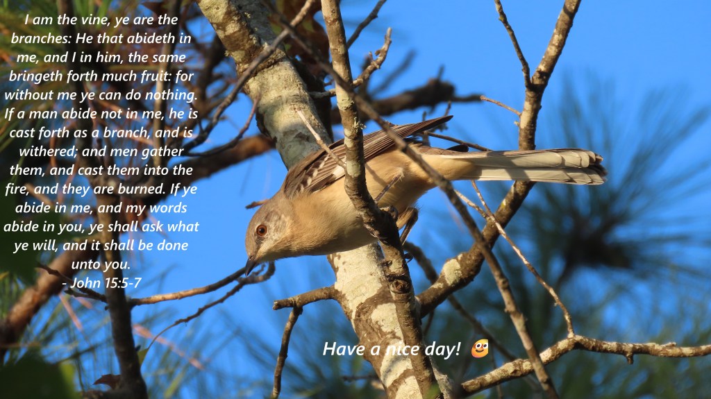 I am the vine, ye are the branches: He that abideth in me, and I in him, the same bringeth forth much fruit: for without me ye can do nothing. If a man abide not in me, he is cast forth as a branch, and is withered; and men gather them, and cast them into the fire, and they are burned. If ye abide in me, and my words abide in you, ye shall ask what ye will, and it shall be done unto you.