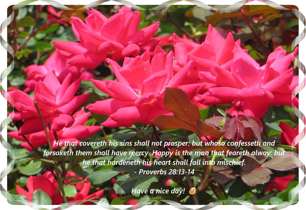 He that covereth his sins shall not prosper: but whoso confesseth and forsaketh them shall have mercy. Happy is the man that feareth alway: but he that hardeneth his heart shall fall into mischief.