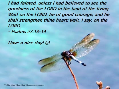 I had fainted, unless I had believed to see the goodness of the LORD in the land of the living. Wait on the LORD: be of good courage, and he shall strengthen thine heart: wait, I say, on the LORD.