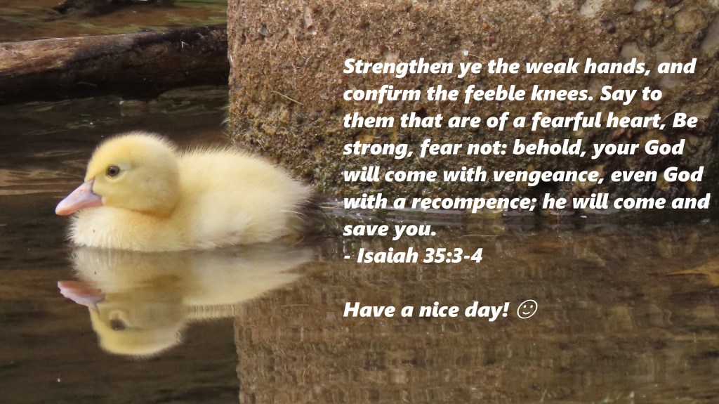 Strengthen ye the weak hands, and confirm the feeble knees. Say to them that are of a fearful heart, Be strong, fear not: behold, your God will come with vengeance, even God with a recompence; he will come and save you.