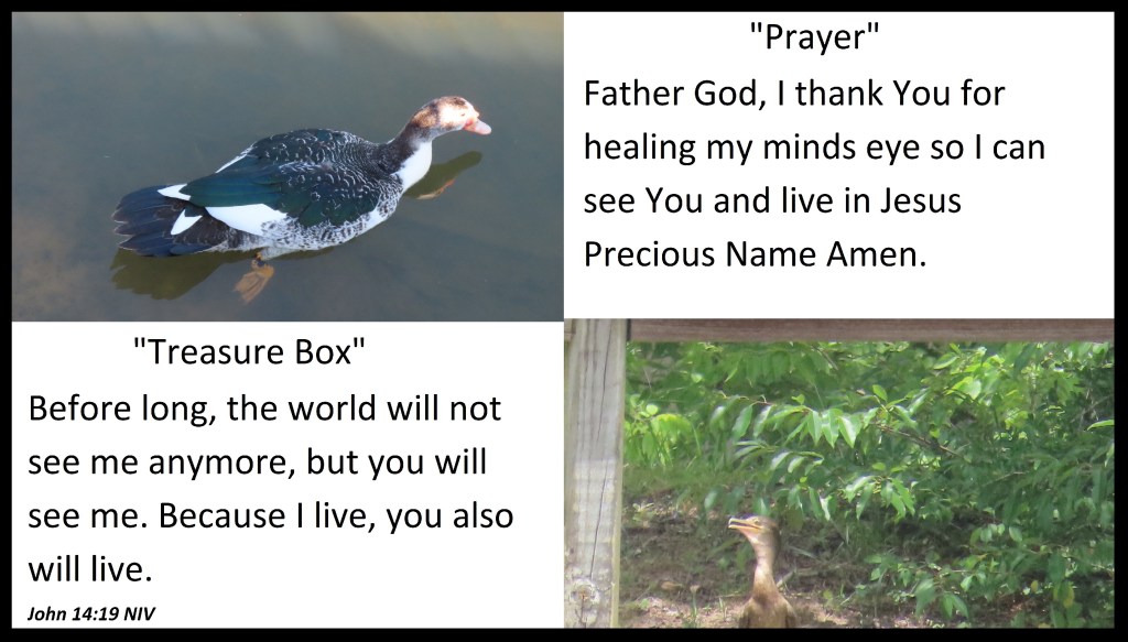 Father God, I thank You for healing my mind’s eye so I can see You and live in Jesus Precious Name Amen.