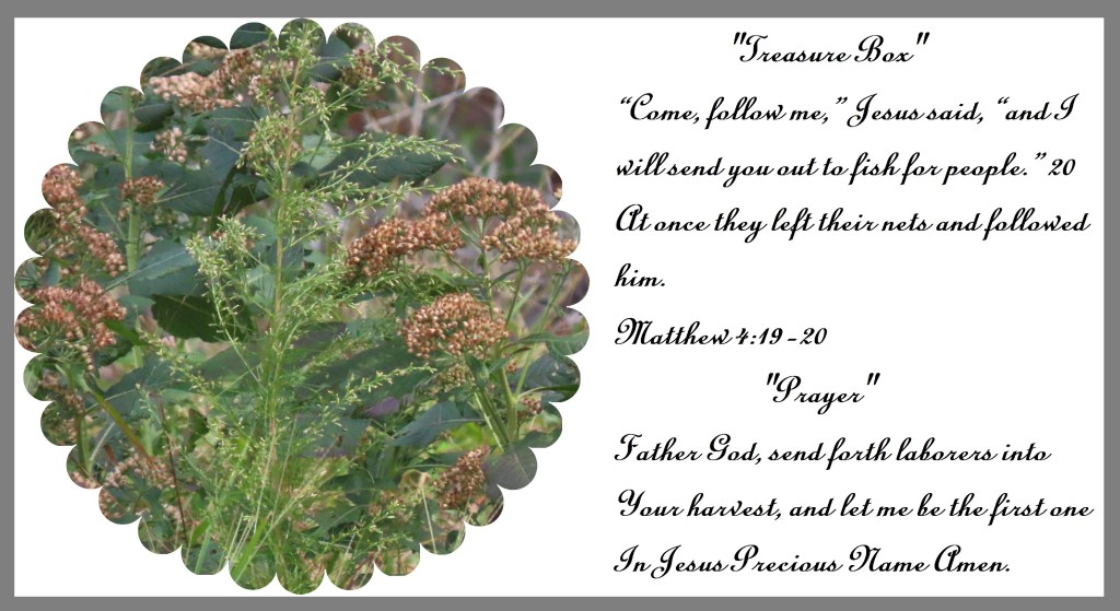“Come, follow me,” Jesus said, “and I will send you out to fish for people.” 20 At once they left their nets and followed him. Matthew 4:19-20 “Prayer” Father God, send forth laborers into Your harvest, and let me be the first one In Jesus Precious Name Amen.