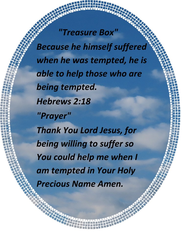 Because he himself suffered when he was tempted, he is able to help those who are being tempted. Hebrews 2:18 “Prayer” Thank You Lord Jesus, for being willing to suffer so You could help me when I am tempted in Your Holy Precious Name Amen.
