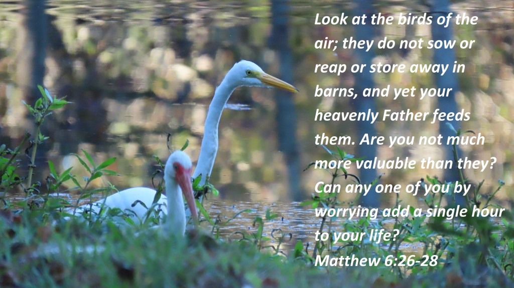 Look at the birds of the air; they do not sow or reap or store away in barns, and yet your heavenly Father feeds them. Are you not much more valuable than they? Can any one of you by worrying add a single hour to your life? Matthew 6:26-28