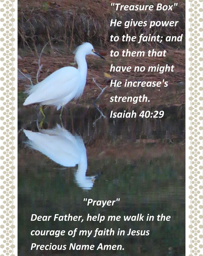 He gives power to the faint; and to them that have no might He increase’s strength. Isaiah 40:29 “Prayer” Dear Father, help me walk in the courage of my faith in Jesus Precious Name Amen.