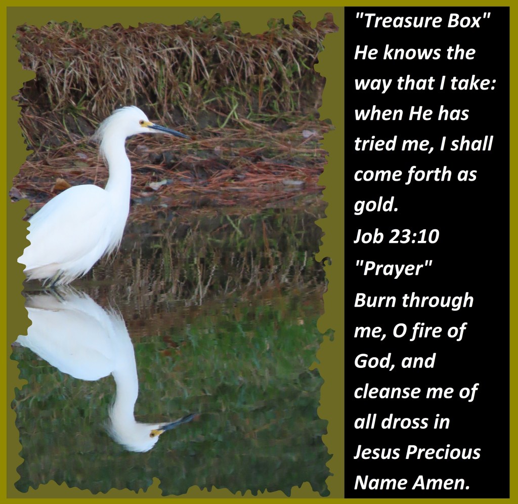 He knows the way that I take: when He has tried me, I shall come forth as gold. Job 23:10 “Prayer” Burn through me, O fire of God, and cleanse me of all dross in Jesus Precious Name Amen.