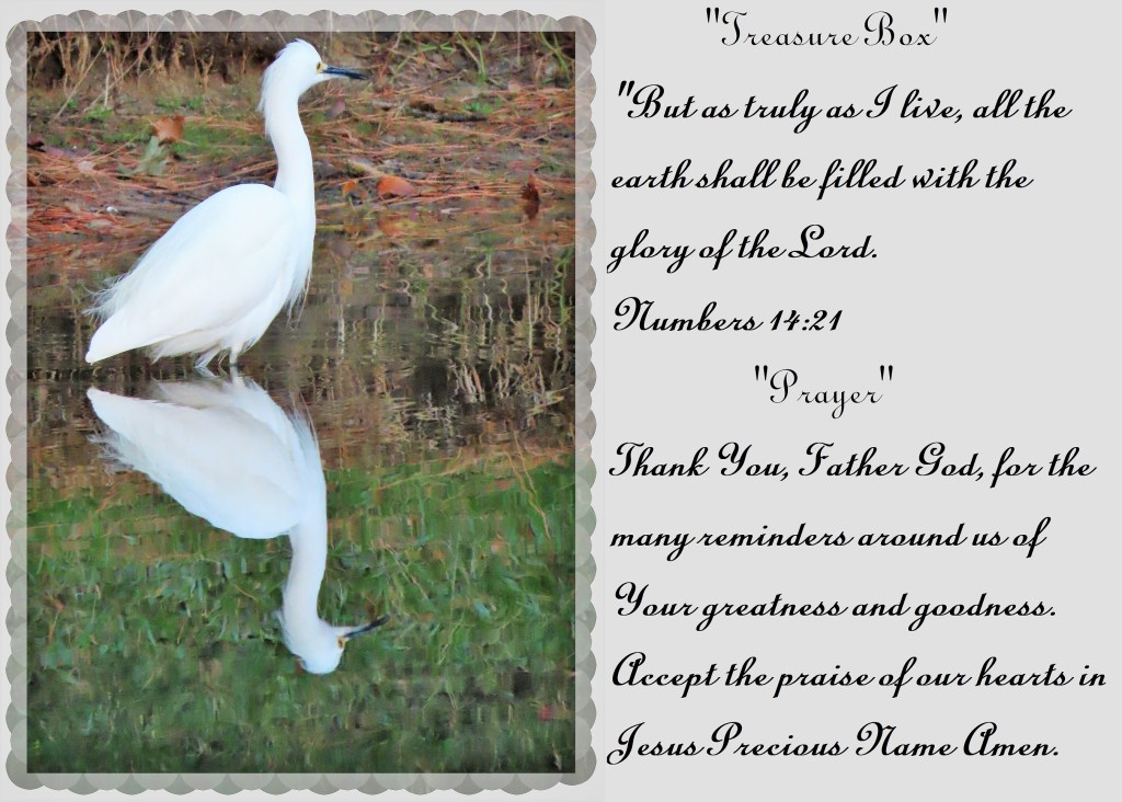 “But as truly as I live, all the earth shall be filled with the glory of the Lord. Numbers 14:21 “Prayer” Thank You, Father God, for the many reminders around us of Your greatness and goodness. Accept the praise of our hearts in Jesus Precious Name Amen.