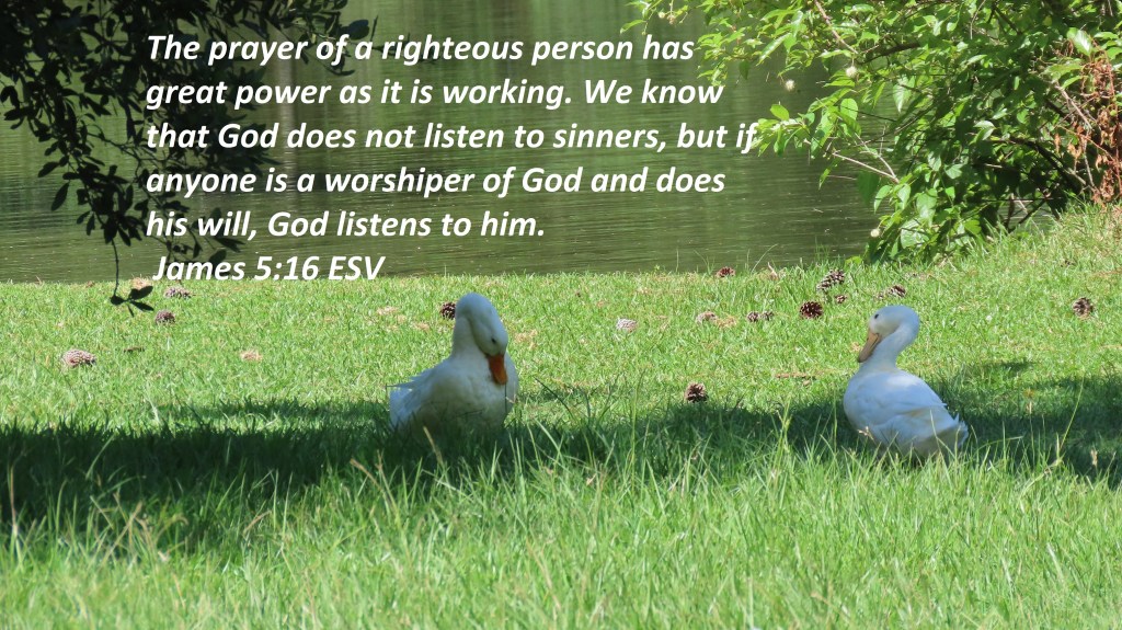 ( 1 Peter 3:18 NIV: For Christ also suffered once for sins, the righteous for the unrighteous, to bring you to God. He was put to death in the body but made alive in the Spirit. ). Therefore, confess your sins to one another and pray for one another, that you may be healed. The prayer of a righteous person has great power as it is working. We know that God does not listen to sinners, but if anyone is a worshiper of God and does his will, God listens to him.