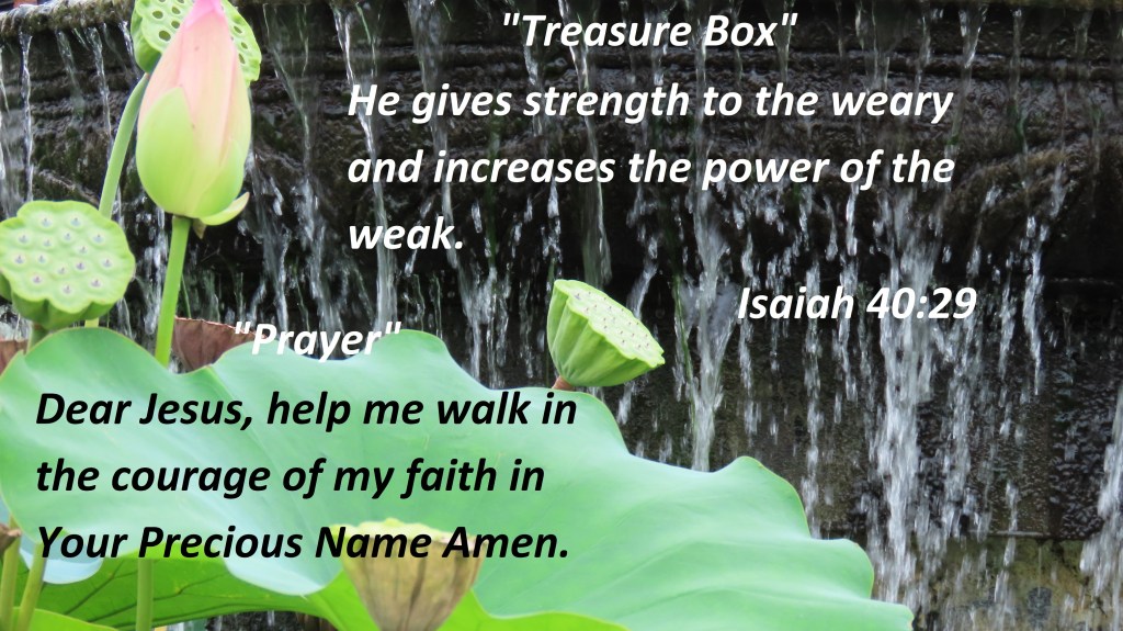 Dear Jesus, help me walk in the courage of my faith in Your Precious Name Amen.