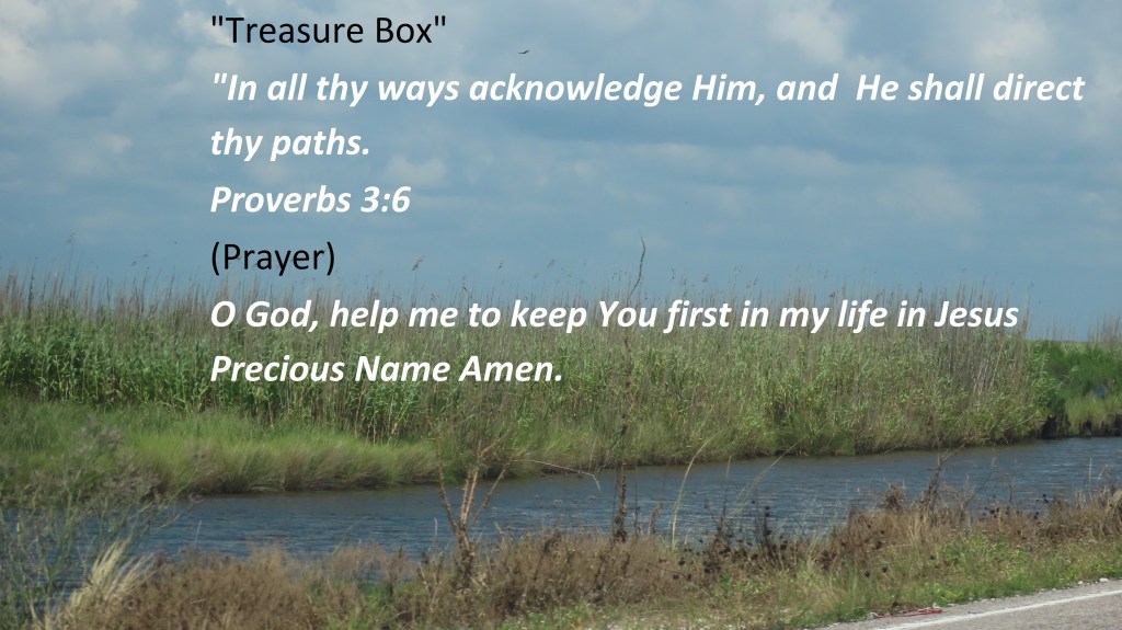 “In all thy ways acknowledge Him, and He shall direct thy paths. Proverbs 3:6 (Prayer) O God, help me to keep You first in my life in Jesus Precious Name Amen.