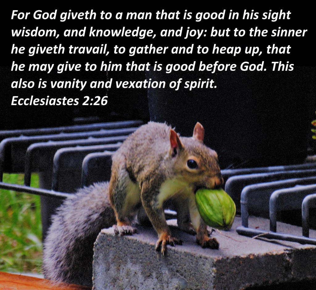 For God giveth to a man that is good in his sight wisdom, and knowledge, and joy: but to the sinner he giveth travail, to gather and to heap up, that he may give to him that is good before God. This also is vanity and vexation of spirit. Ecclesiastes 2:26