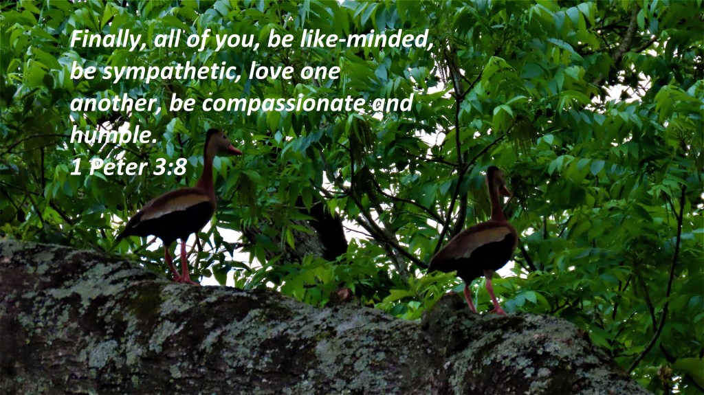 Finally, all of you, be like-minded, be sympathetic, love one another, be compassionate and humble. 1 Peter 3:8