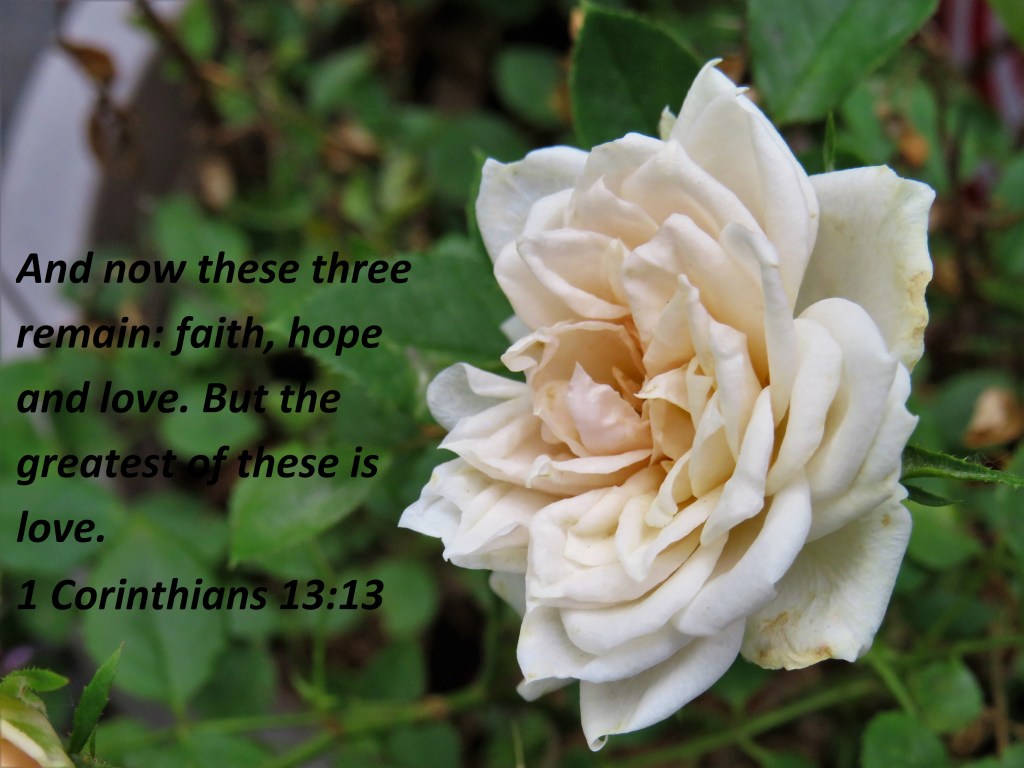 And now these three remain: faith, hope and love. But the greatest of these is love. 1 Corinthians 13:13