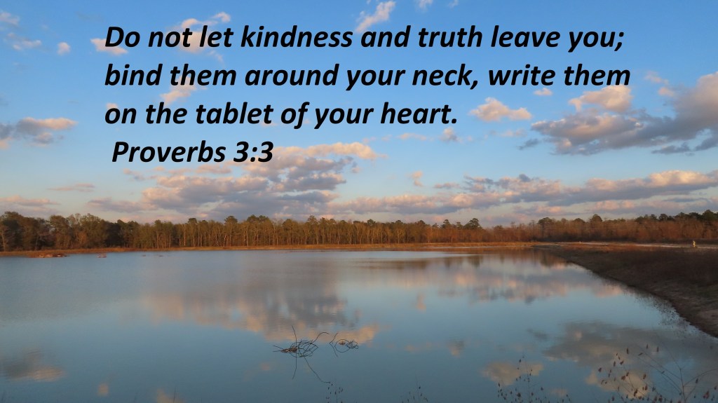 {Power Verse} Do not let kindness and truth leave you; bind them around your neck, write them on the tablet of your heart. Proverbs 3:3