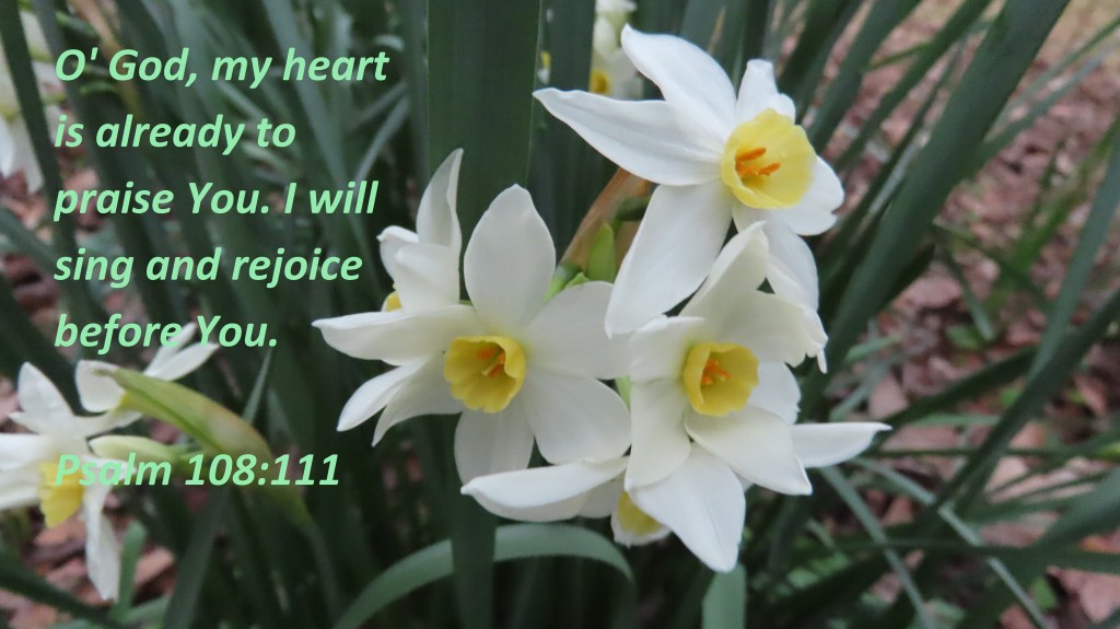 {Power Verse} O’ God, my heart is already to praise You. I will sing and rejoice before You. Psalm 108:111