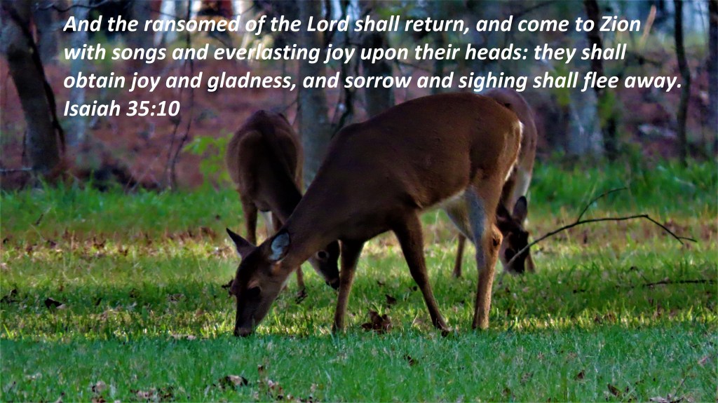 And the ransomed of the Lord shall return, and come to Zion with songs and everlasting joy upon their heads: they shall obtain joy and gladness, and sorrow and sighing shall flee away. Isaiah 35:10