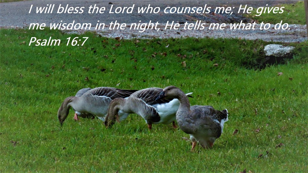 I will bless the Lord who counsels me; He gives me wisdom in the night, He tells me what to do. Psalm 16:7