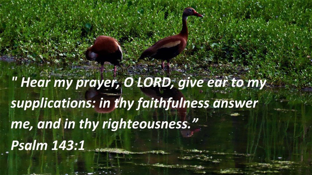 “From David Psalm” Hear my prayer, O LORD, give ear to my supplications: in thy faithfulness answer me, and in thy righteousness.” Psalm 143:1