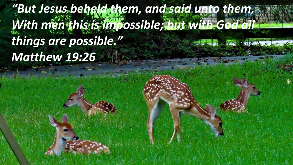 “But Jesus beheld them, and said unto them, With men this is impossible; but with God all things are possible.” Matthew 19:26