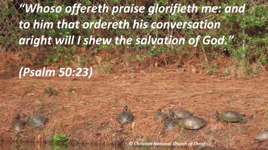 “Whoso offereth praise glorifieth me: and to him that ordereth his conversation aright will I shew the salvation of God.” (Psalm 50:23)