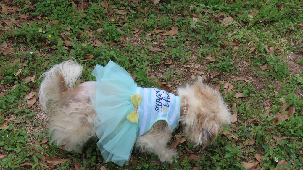 We have this shih tzu. Her name is Molly we inherited her. Molly is 119 years old in dog years. 17 years old in human years. She is blind. She has pink skin for eyes. She is so funny, when I take her outside. She just like to go around in circles. She is not playful like other dogs. But she is happy being loved and well taken care of. She knows when I am close to her outside. When I am at my computer, she will lay down at my feet. Her spirit knows. She knows where her bed is and the door to get out and where her food and water is at. Molly is a blessing in my heart. Thank you for reading and I hope this message helps someone today. Have a awesome day full of blessings and joy and enjoy this new day God has given us all.