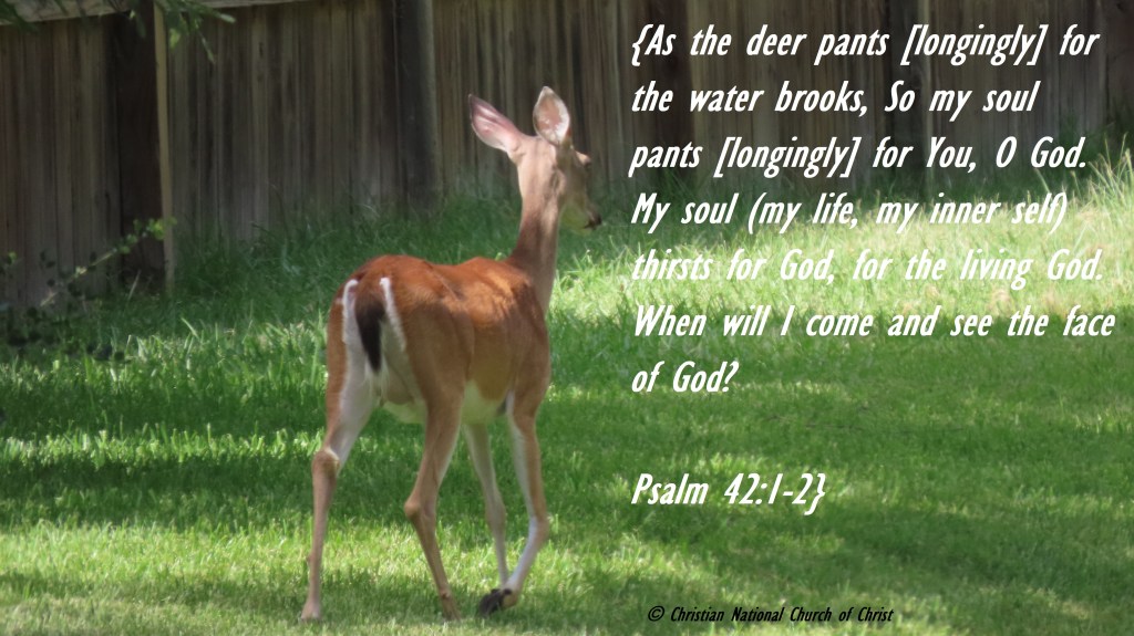 {As the deer pants [longingly] for the water brooks, So my soul pants [longingly] for You, O God. My soul (my life, my inner self) thirsts for God, for the living God. When will I come and see the face of God? Psalm 42:1-2}