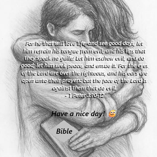 For he that will love life, and see good days, let him refrain his tongue from evil, and his lips that they speak no guile: Let him eschew evil, and do good; let him seek peace, and ensue it. For the eyes of the Lord are over the righteous, and his ears are open unto their prayers: but the face of the Lord is against them that do evil. – 1 Peter 3:10-12